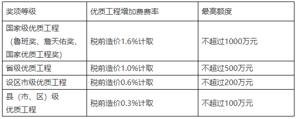 3、调整优质工程增加费