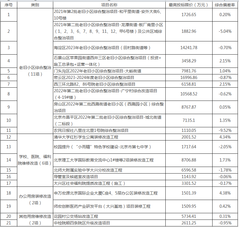 2023年,房修定额站共监督检查了21项房屋修缮工程项目最高投标限价,涉及工程标的额11.49亿元,包含老旧小区综合整治、学校和医院维修改造、办公用房装修改造、其他用房改造等房屋修缮工程项目。