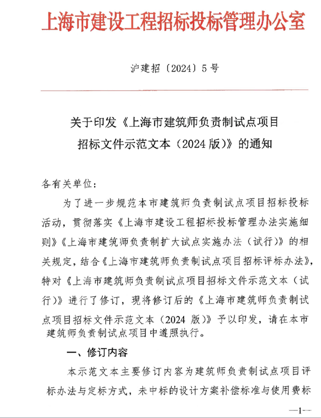 2024版《上海市建筑师负责制试点项目招标文件示范文本》印发