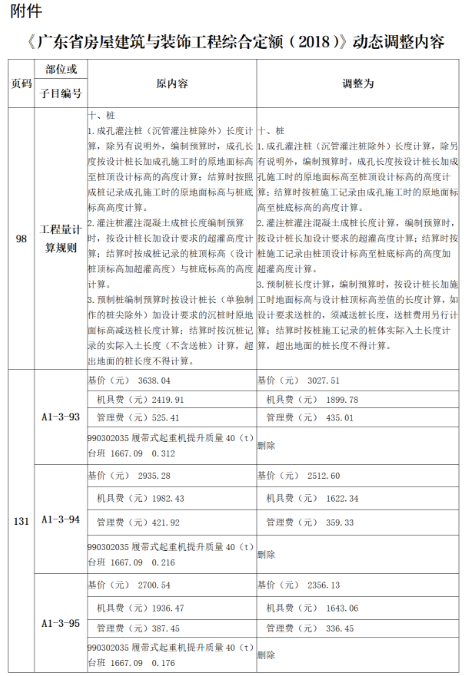 近期,我站组织专家研析了广东省建设工程定额动态管理系统收集的反馈意见,现将《广东省房屋建筑与装饰工程综合定额(2018)》调整内容印发你们,请遵照执行。
