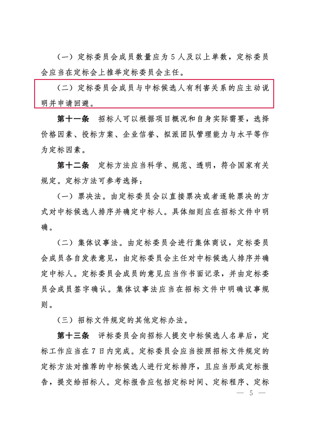 (二)定标委员会成员与中标候选人有利害关系且未申请回避的;