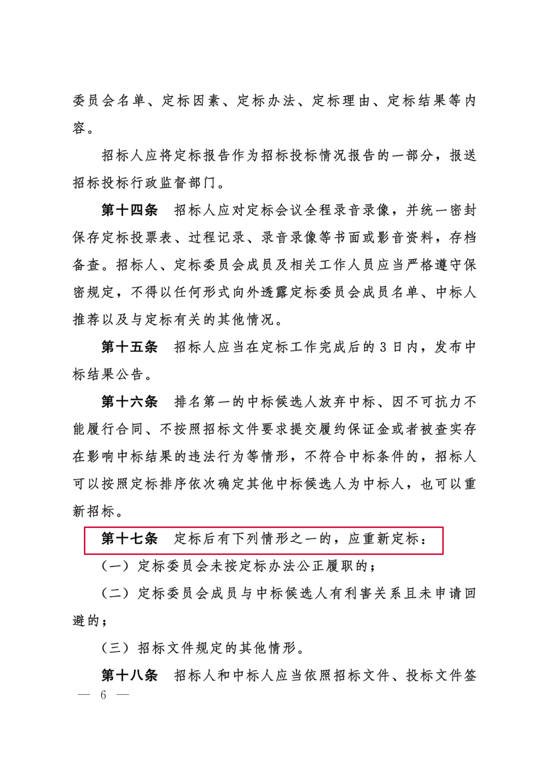 第十七条 定标后有下列情形之一的,应重新定标: