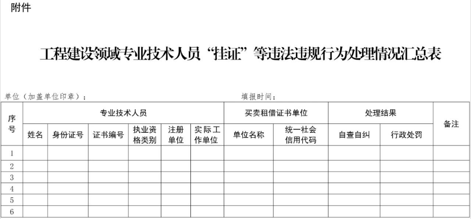 附件:工程建设领域专业技术人员“挂证”等违法违规行为处理情况汇总表