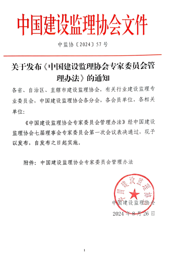 中国建设监理协会关于发布《中国建设监理协会专家委员会管理办法》的通知
