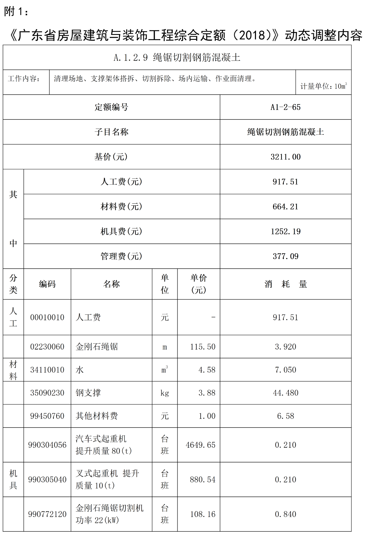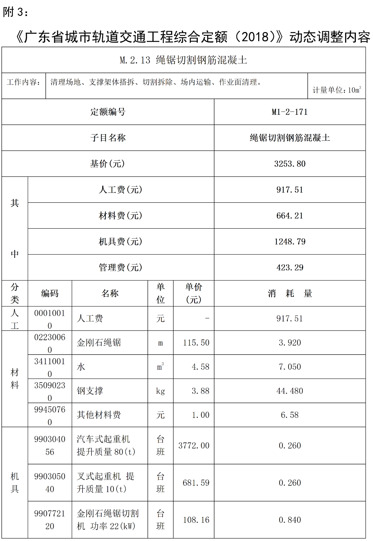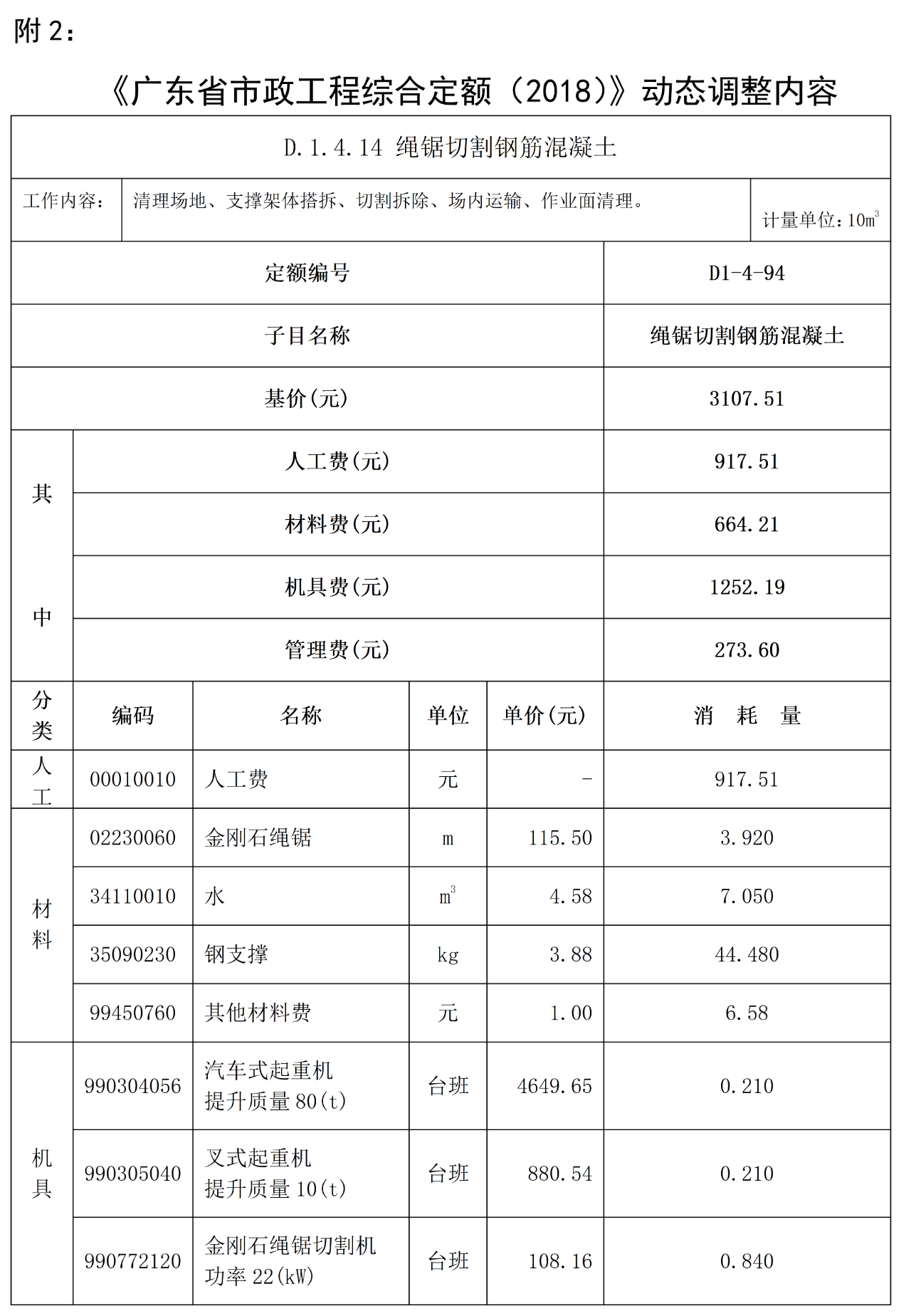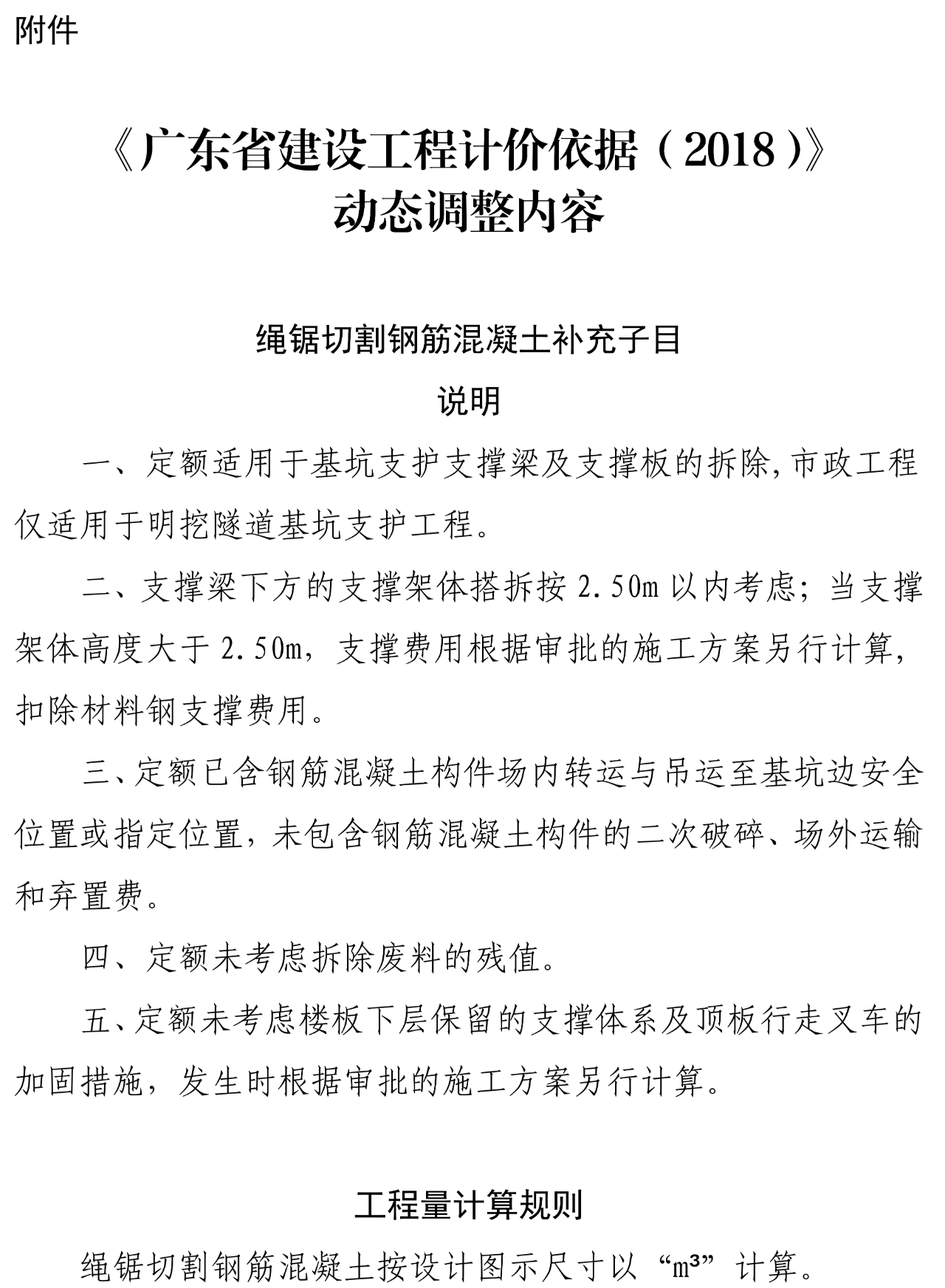 近期,我站组织专家研析了广东省建设工程定额动态管理系统收集的反馈意见,补充《广东省建设工程计价依据 (2018)》绳锯切割钢筋混凝土定额子目,现印发你们,请遵照执行。