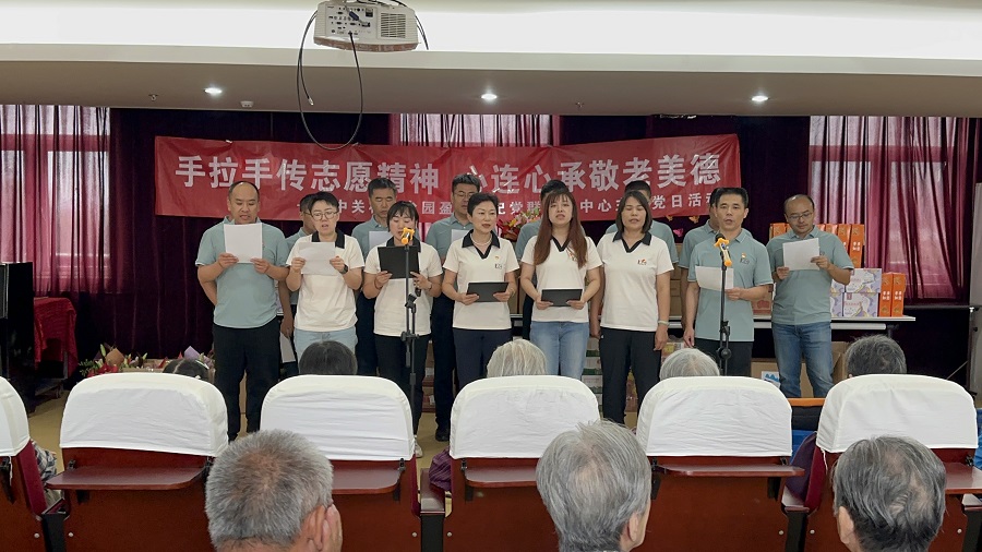 尊老爱幼是中华民族的优秀传统美德,在重阳节这个传统节日即将到来之际,9月29日下午,米兰官方端网页版公司党支部联合盈坤世纪党群服务中心,带着对老年人的尊敬、关怀与爱戴走进卢沟桥社会福利中心,通过表演节目、提供陪伴等方式丰富老年人的精神文化生活,同时为敬老院的老人们送去温暖、欢乐和祝福,共同度过一个温馨快乐的重阳节。