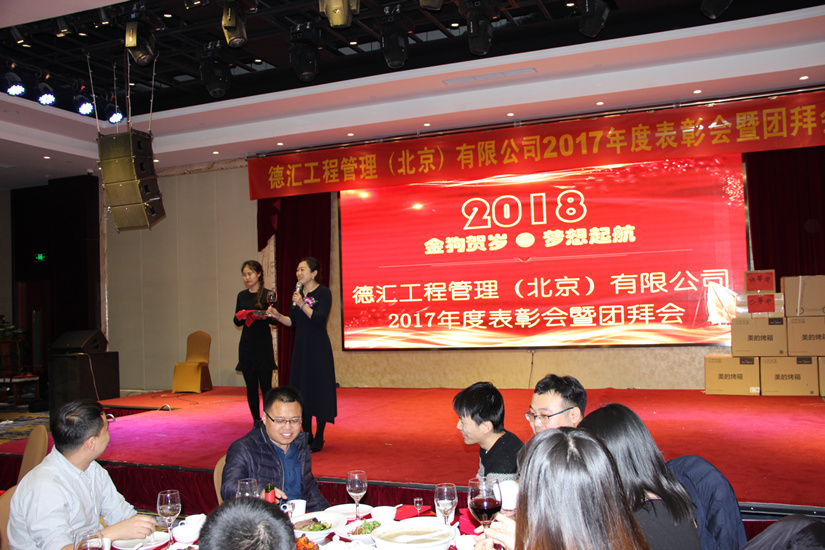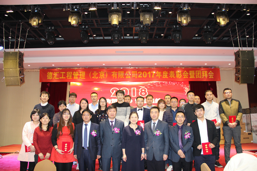 伴随着2018年春天的脚步,德汇工程管理(北京)有限公司于2018年2月2日(周五)在北京盈坤维景酒店召开2017年度表彰会暨团拜会。公司员工、集团兄弟公司代表共计210余人参加了本次年会。
