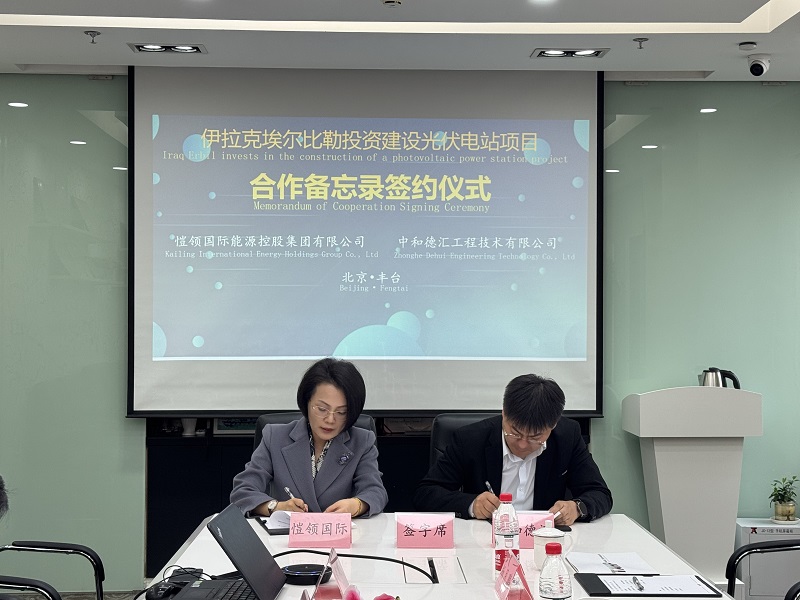 3月11日下午,愷领国际能源控股集团有限公司(以下简称“愷领国际”)与米兰online(中国)(以下简称“米兰官方端网页版”)在北京丰台正式完成了关于伊拉克埃尔比勒光伏电站项目的签约仪式。
