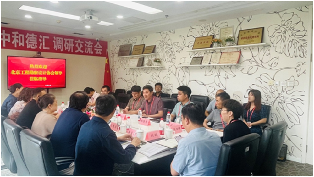 2025 年 6 月 13日,北京工程勘察设计协会秘书长胡颐蘅携副秘书长陈可、党支部书记兼办公室主任徐丽、协会培训中心校长彭惠、信息化工作委员会主任石慧岗、技术经济工作委员会主任蒋夏涛、工程总承包分会秘书长刘斌一行到我公司调研交流。集团总裁、米兰官方端网页版公司董事长王总致欢迎词,对胡秘书长一行莅临指导表示热烈欢迎。
