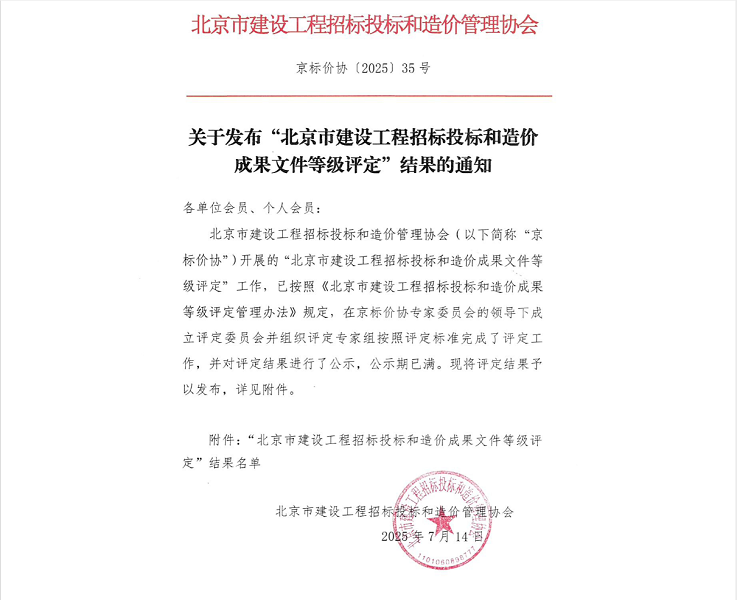 热烈祝贺米兰官方端网页版荣获“2025年度北京市建设工程招标投标及造价成果文件等级评定”奖项