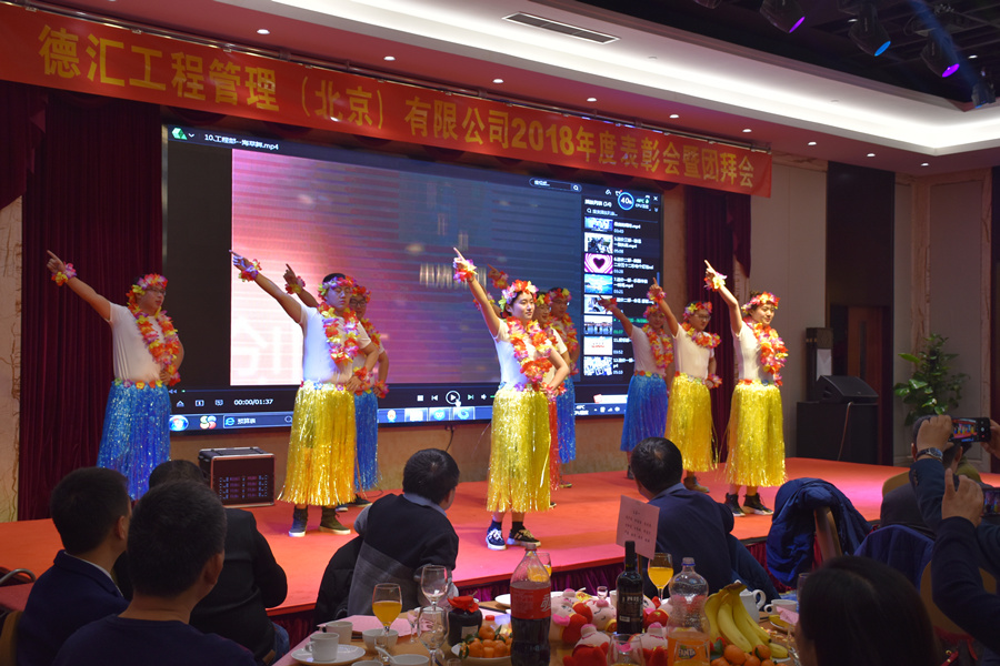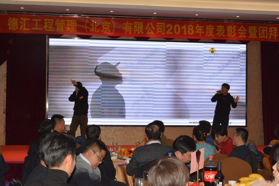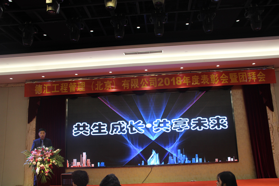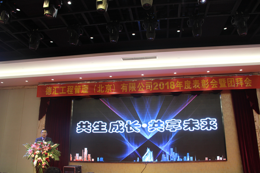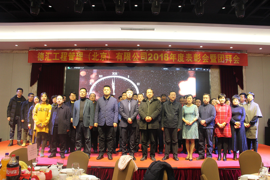 德汇工程管理(北京)有限公司于2019年1月18日(周五)在北京盈坤维景酒店召开2018年度表彰会暨团拜会。集团公司领导、兄弟公司代表、公司领导、分公司和运营中心事业部负责人、公司全体员工共计310余人参加了本次年会。