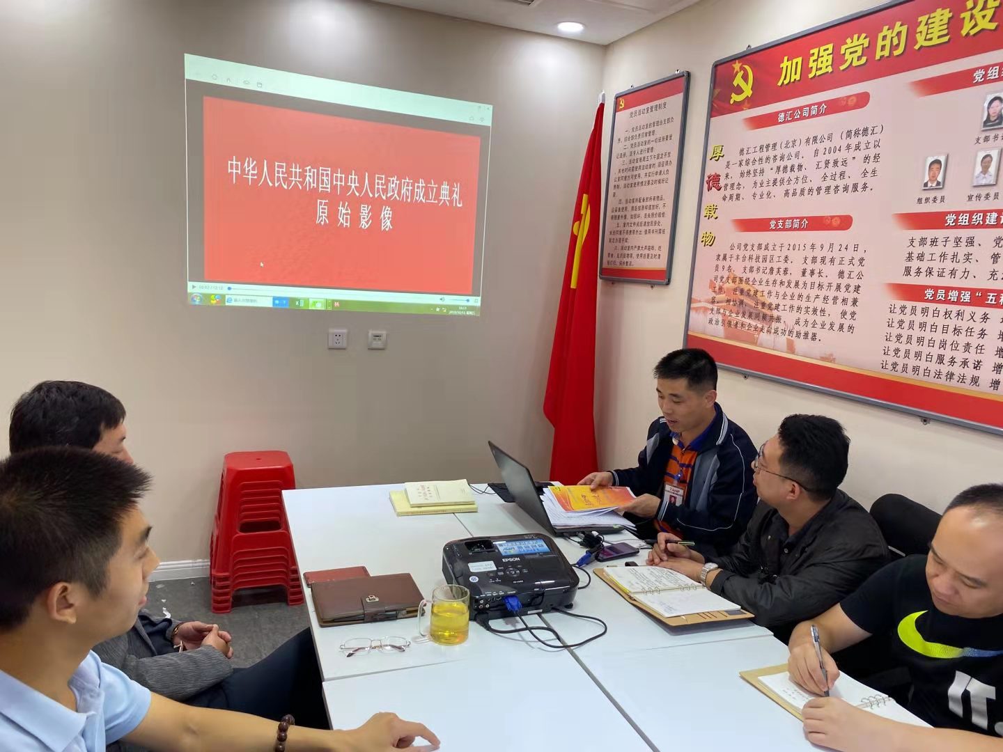会上首先,我们重温了1949年《开国大典》12分钟彩色视频,大家看完热血沸腾。